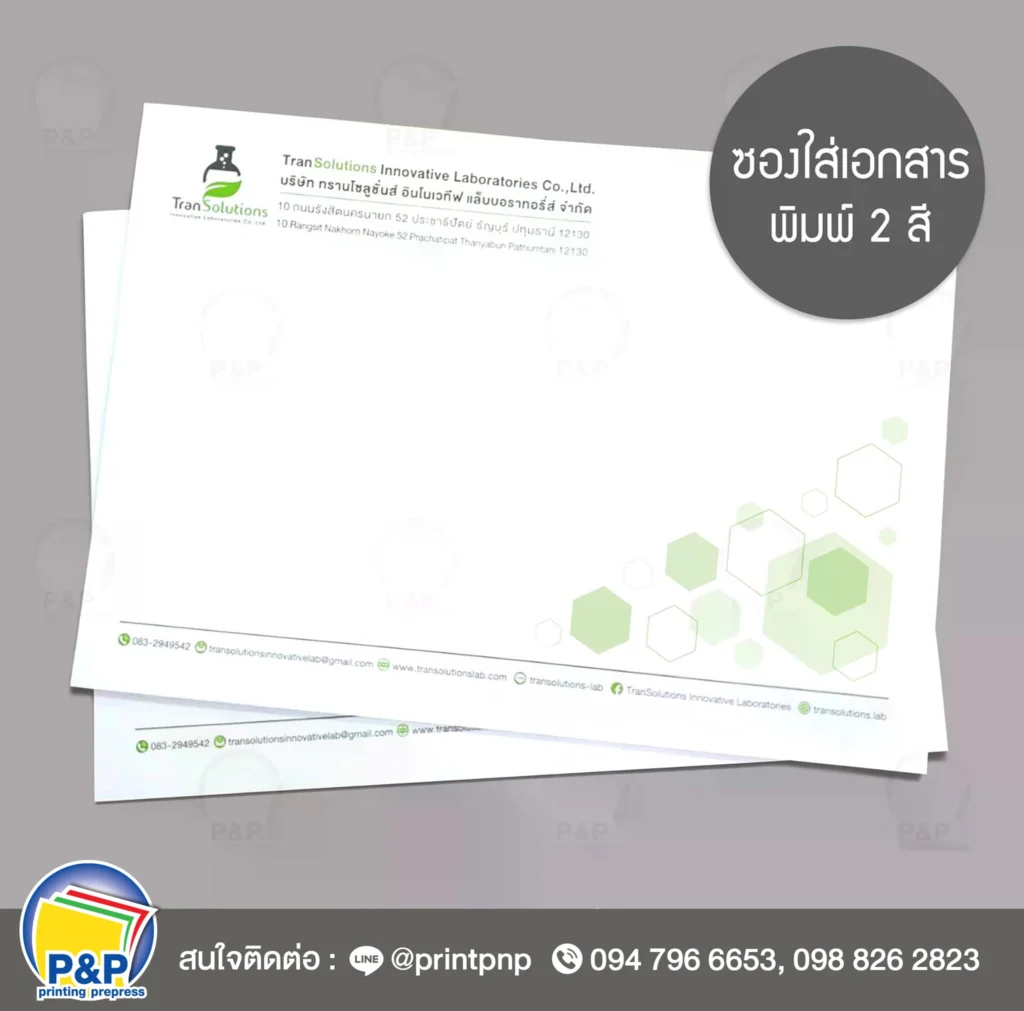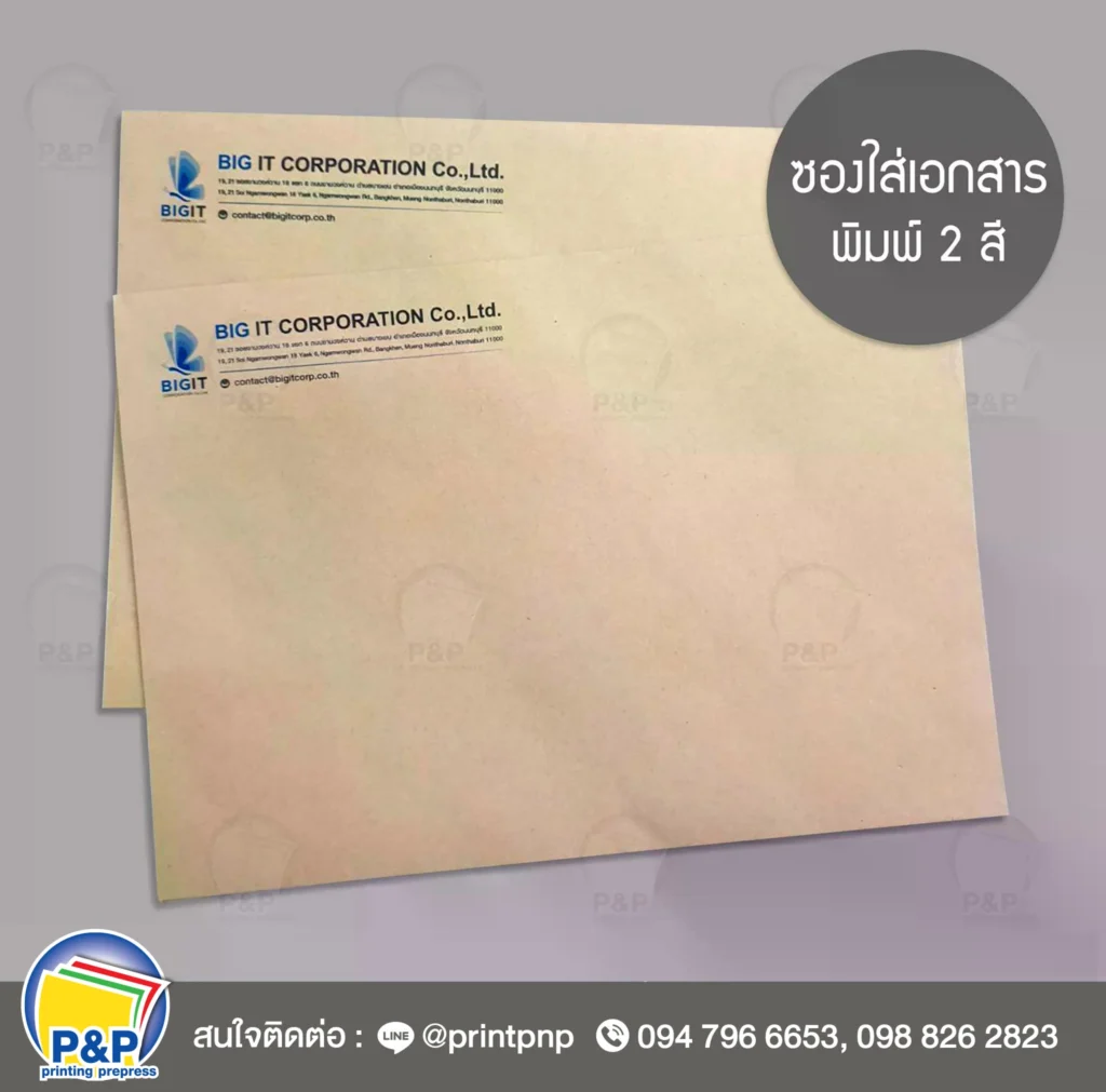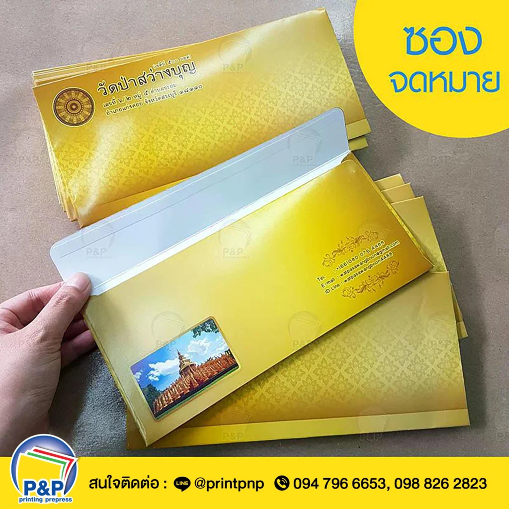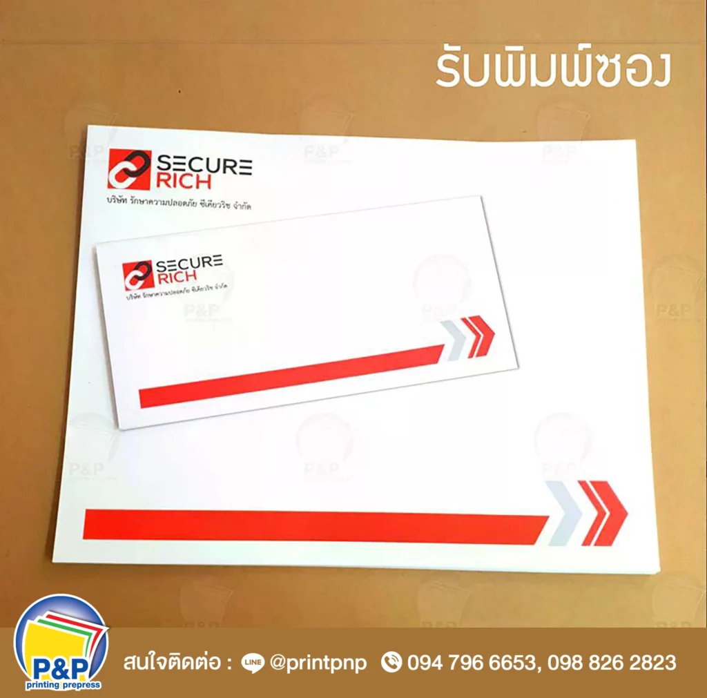 P&P Printing Prepress ให้บริการพิมพ์ซองจดหมายและซองเอกสารหลากหลายรูปแบบ ไม่ว่าจะเป็นซองมาตรฐาน ซองสั่งผลิตพิเศษ หรือซองที่ต้องการดีไซน์เฉพาะ พร้อมพิมพ์โลโก้ ชื่อบริษัท ที่อยู่ และรายละเอียดอื่น ๆ ได้ตามต้องการ