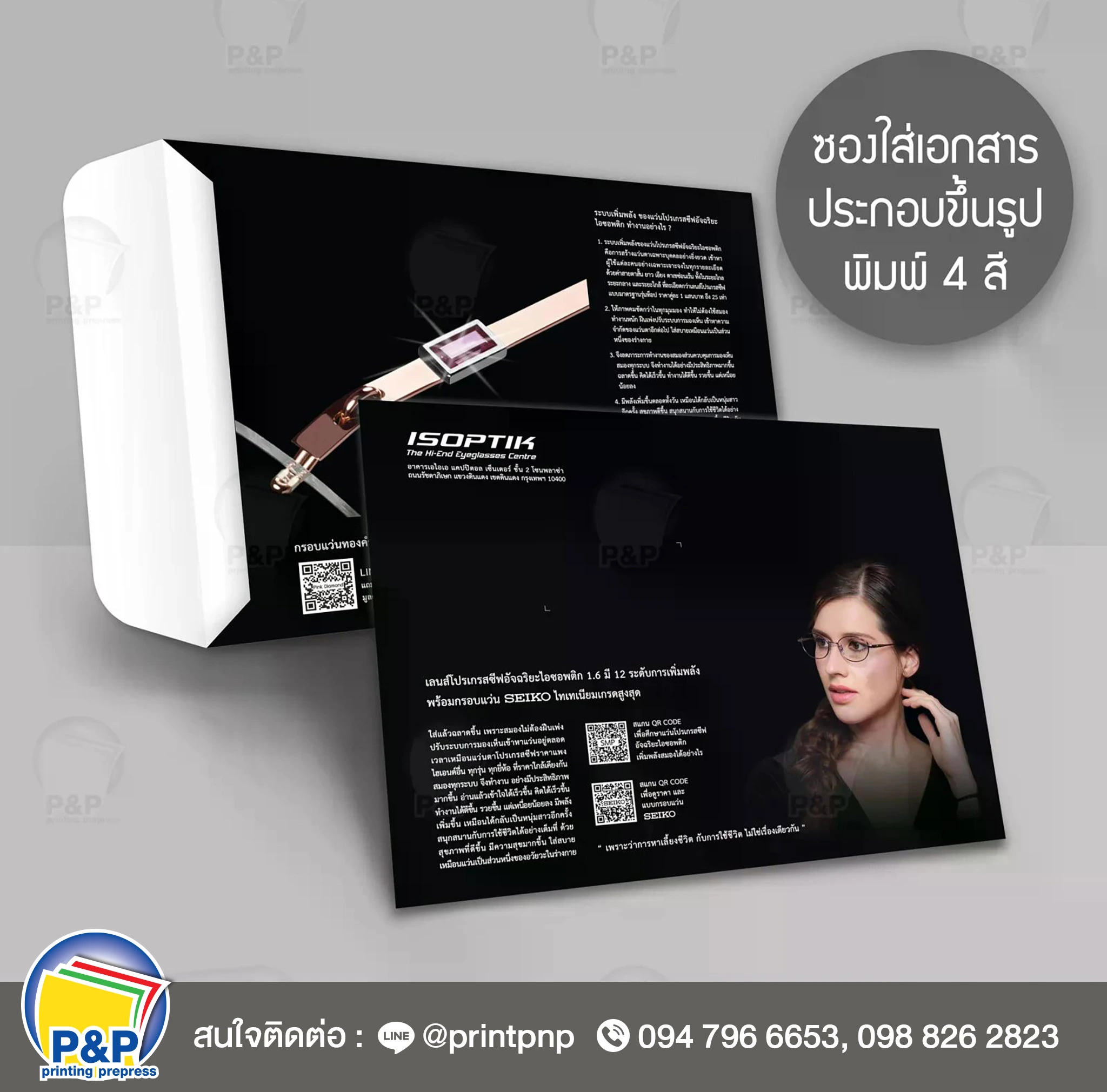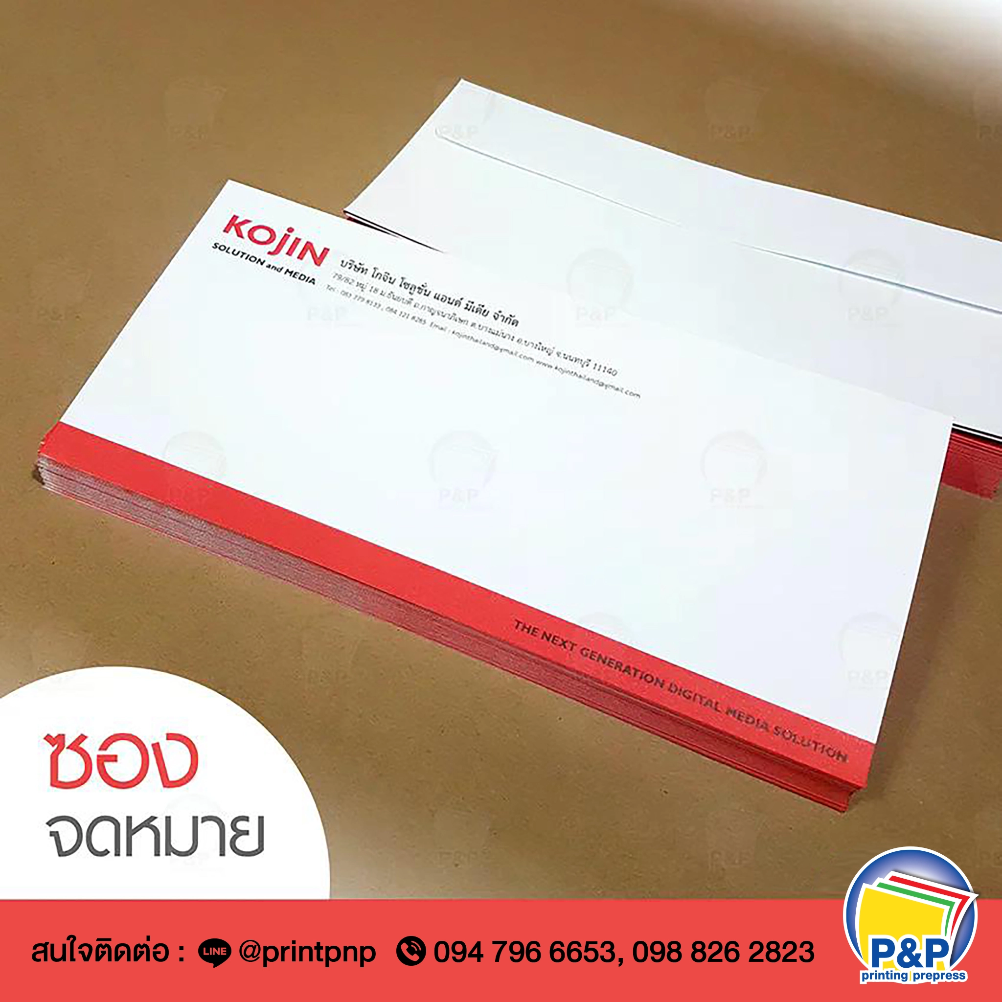 P&P Printing Prepress ให้บริการพิมพ์ซองจดหมายและซองเอกสารหลากหลายรูปแบบ ไม่ว่าจะเป็นซองมาตรฐาน ซองสั่งผลิตพิเศษ หรือซองที่ต้องการดีไซน์เฉพาะ พร้อมพิมพ์โลโก้ ชื่อบริษัท ที่อยู่ และรายละเอียดอื่น ๆ ได้ตามต้องการ